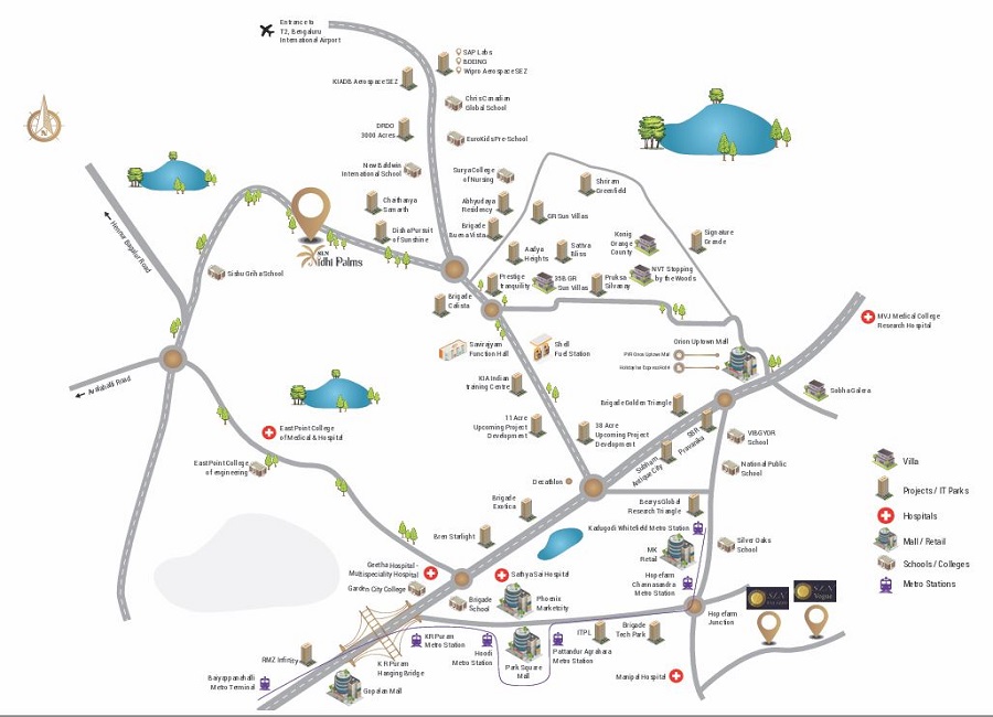 The newest signature project by SLN Infra, SLN Nidhi Palms is poised to become the residential hotbed for the future of Bangalore. Being strategically located within reach from Whitefield, ITPL and KR Puram, providing excellent connectivity to the key points in the North and East of the city. The location also provides easy access to the International Airport. Nidhi Palms is developed with a vision to provide a life of tranquil luxury with 81 tastefully crafted villas in a lush, landscaped 5-acre layout boasting 15+ hotel grade amenities and the lavish 12,500 sq. ft. Coco Grove Clubhouse. Every detail is thoughtfully planned to give residents a seamless life, with fittings and specifications that speak of global standards of luxury. This is complimented by the latest innovative, sustainable construction practices.